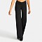 Groove wide leg pant hugs the leg through the thigh to the knee and gradually opens to the ankle and features a V front waist. The inseam on size Medium is 32"