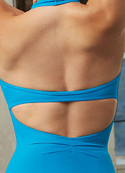 Neckholder Trikot mit Plissé Details im Brustbereich. Das Trikot hat einen Rückensteg, eine Brustraffung sowie einen moderaten Beinschnitt.