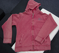 Dieses Kapuzen trash/used look Sweatjacke ist aus der Freddy High Kick Kollektion und leider nur noch als Restbestand auf Lager. Es ist aus Baumwolle und dunkelrot-farbig. Das Sweatshirt hat zwei Taschen und Raglanarme.