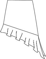 Kurzer Salsa-Rock, diagonal abfallend geschnitten; aus weich fallendem Polyester; elastisches Hüftband.